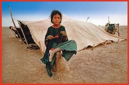 一旦他们再次定居,一些妇女和孩子会骑着驴到远处的井,将山羊皮袋装满够好几天喝的水。阿塔卡和家人也会去井边,让骆驼喝水,却从不在井边定居。为了保护隐私,他们会在几小时路程以外的地方扎营。