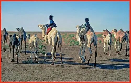 图:阿塔卡的堂兄亚当博(Adambo)和穆罕默德(Mohammed)正赶骆驼去附近的牧场。