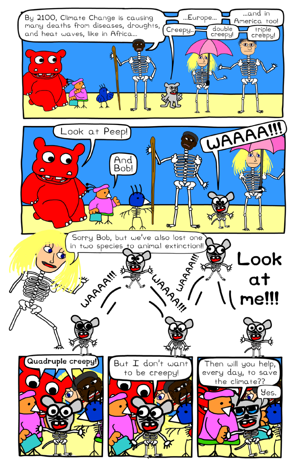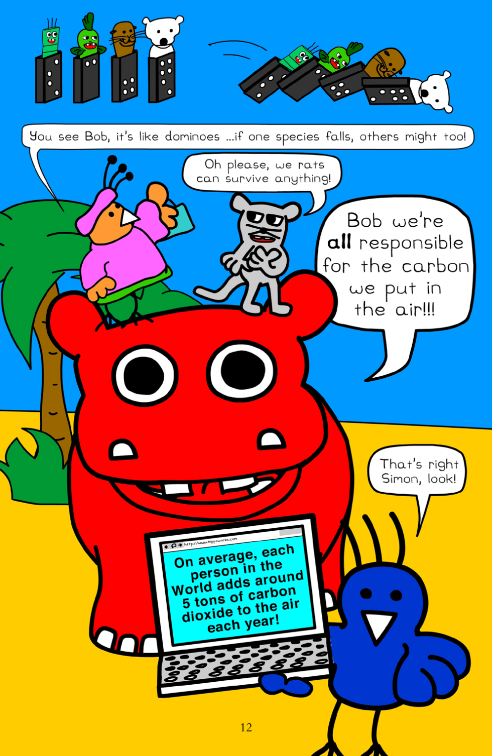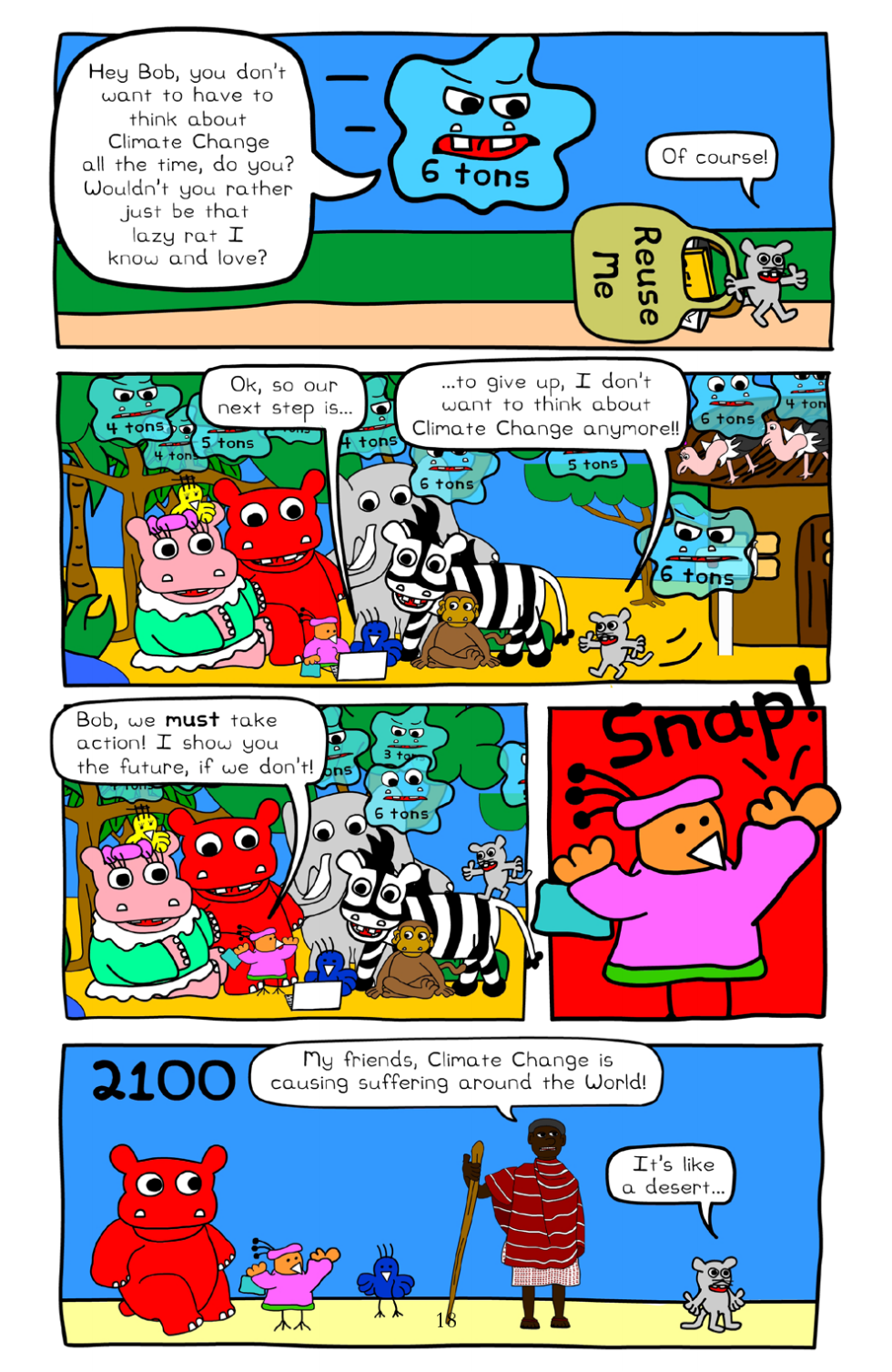 碳:嘿,鲍勃!你不会一直管气候变化的对吧?难道你不愿做我所知道和喜欢的那只懒老鼠了吗?
