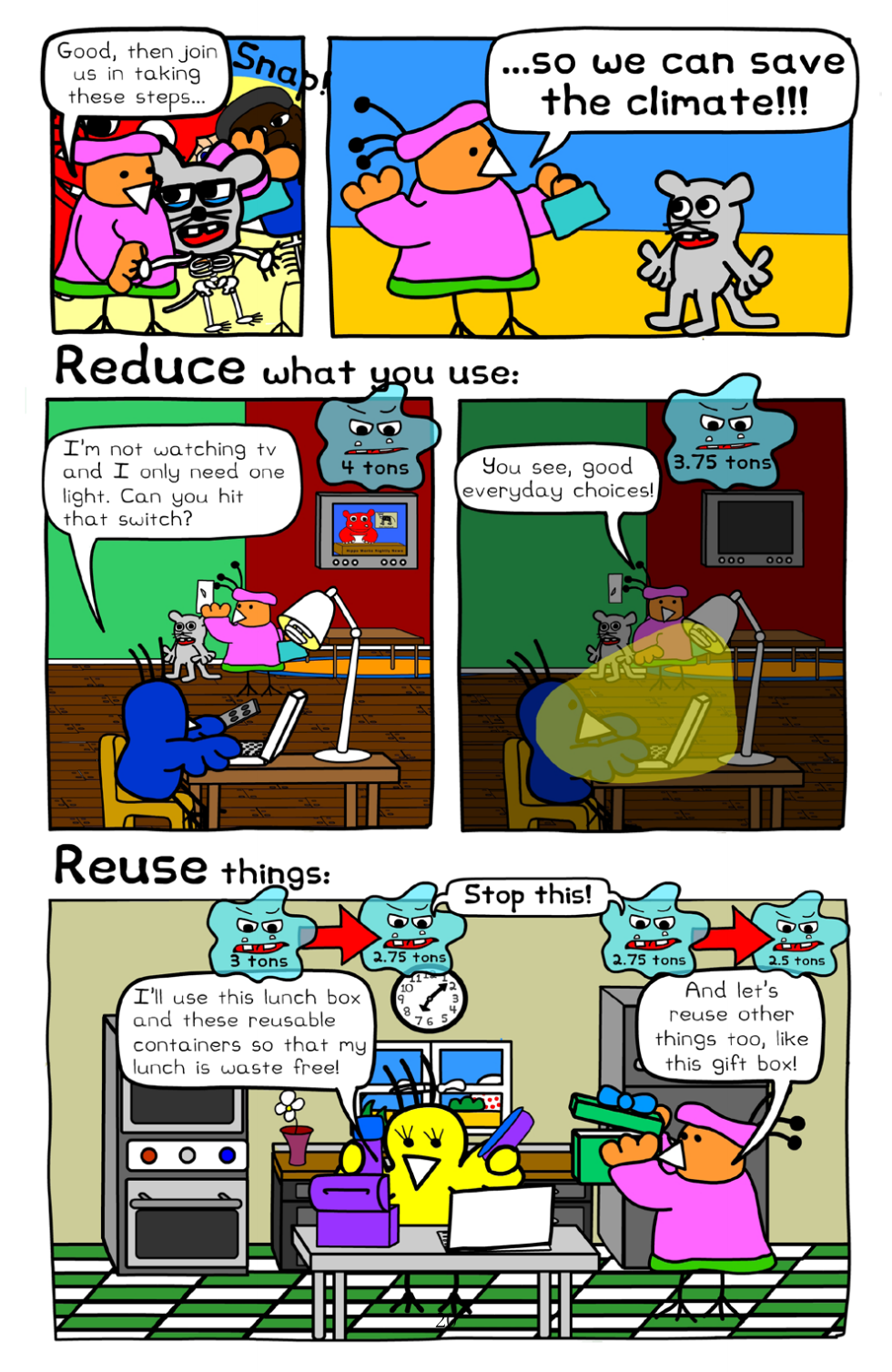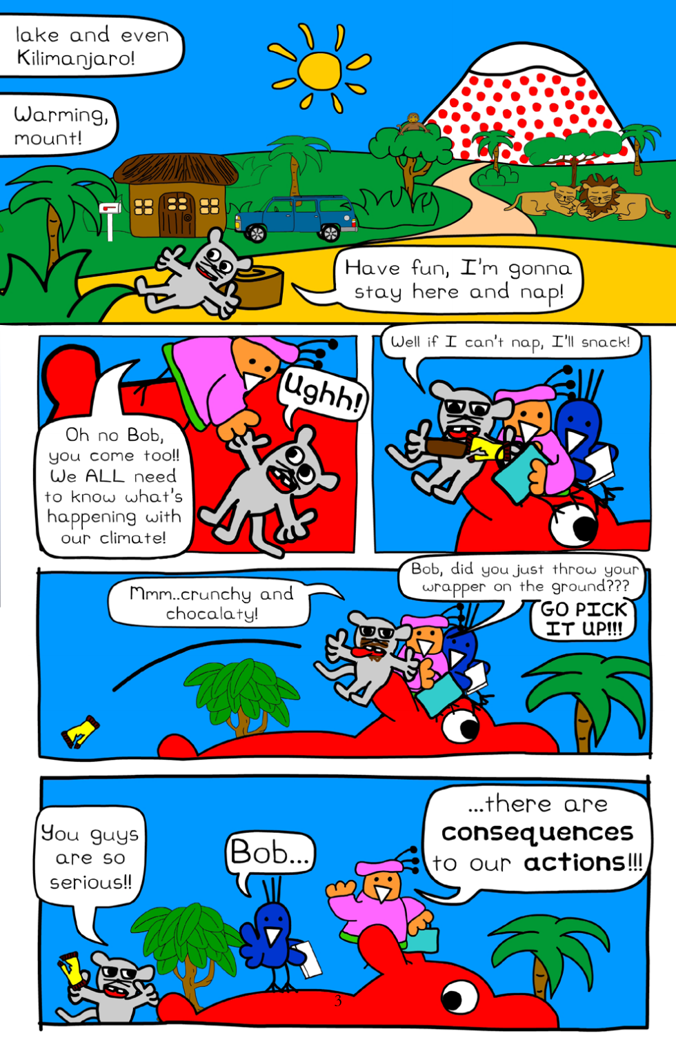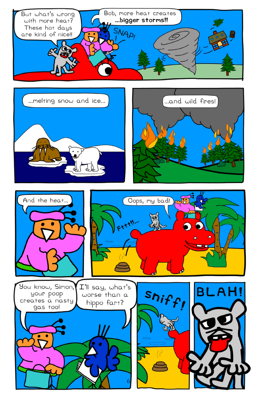 碳:嘿,鲍勃!你不会一直管气候变化的对吧?难道你不愿做我所知道和喜欢的那只懒老鼠了吗?
