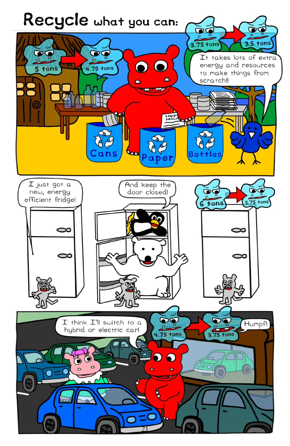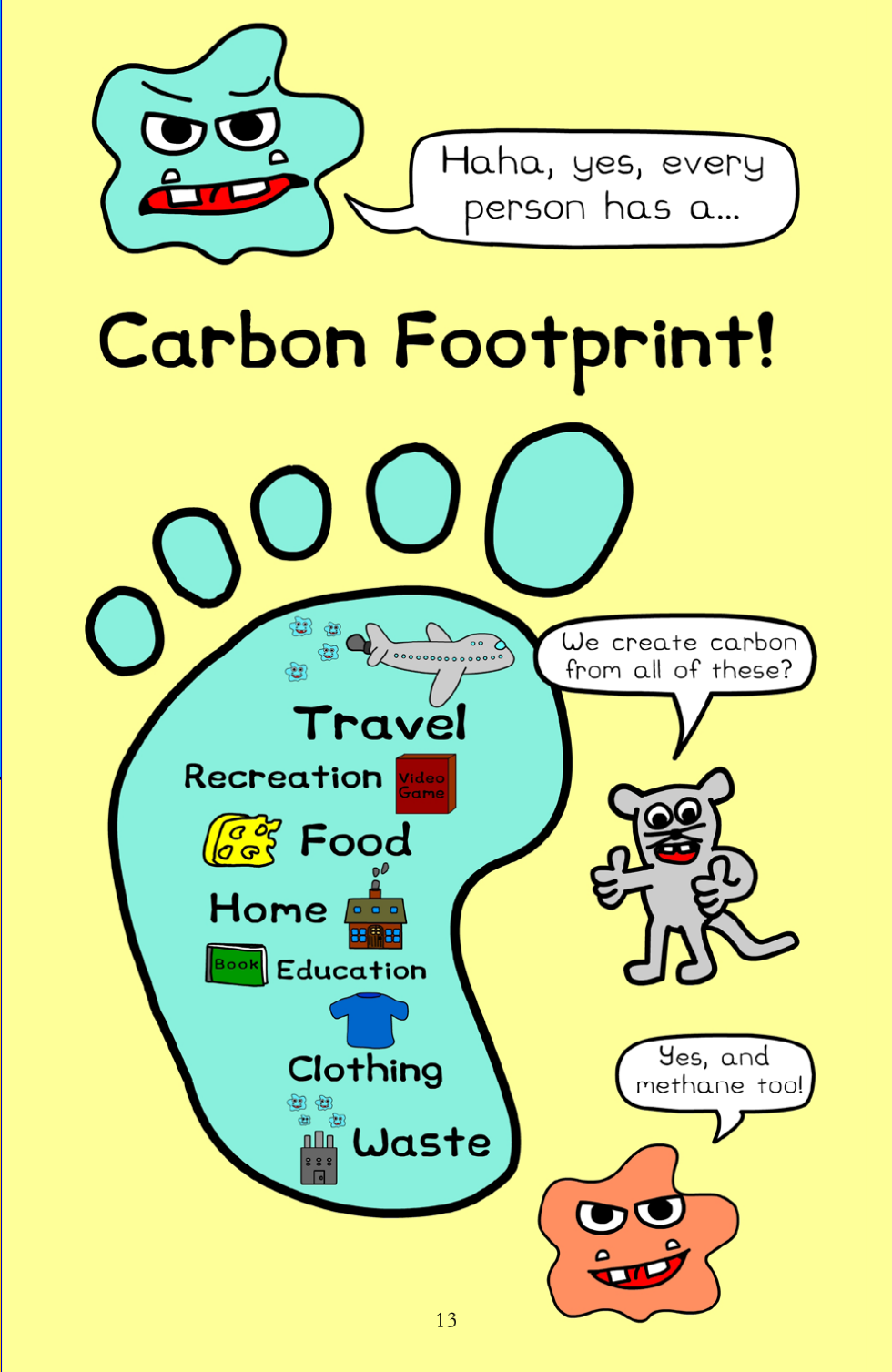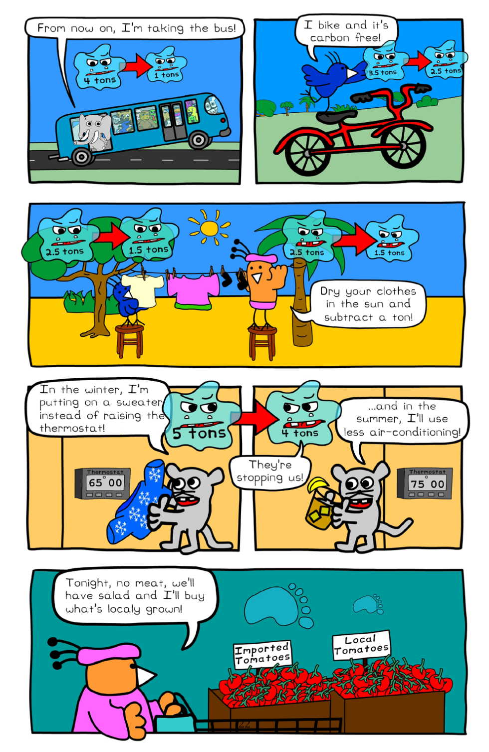 碳:哈哈,是的,人人都有碳足迹(CarbonFootprint),来自交通、食物、书、衣服等等。