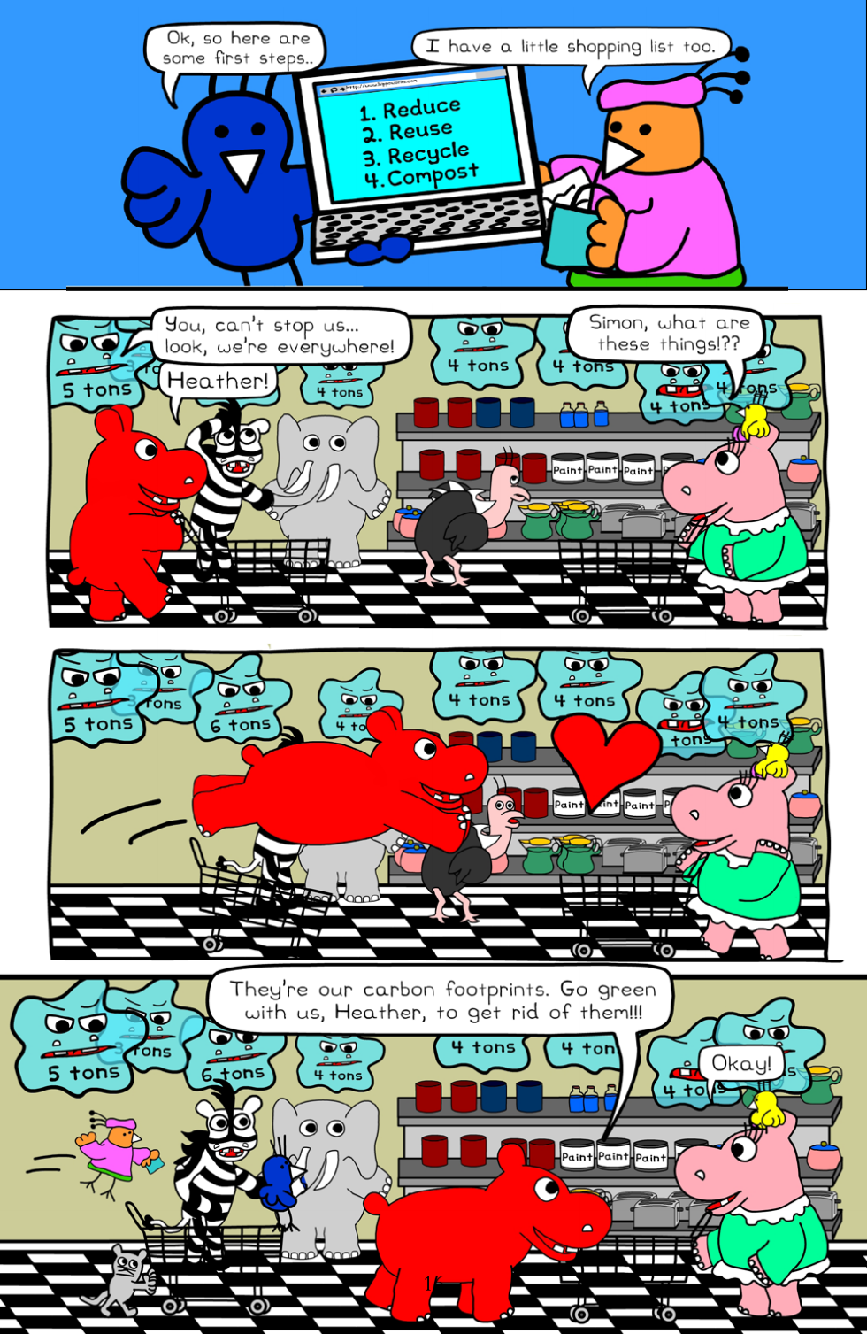 西蒙:这些是碳足迹。跟我们一起环保吧海瑟,摆脱它们!