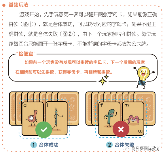 怎么办?当然是接着使用听读玩套装里的纸牌桌游,跟着“合体魔法”这一核心拼读规则,来一场“拼音大冒险”啦!